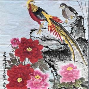五谷丰登 锦鸡呈祥映日红